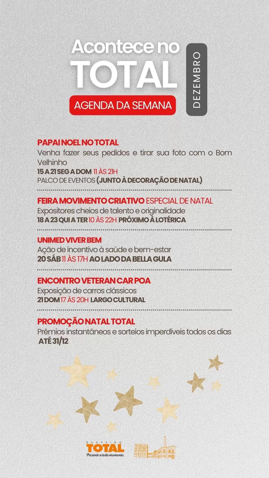 Neste fim de ano, o Shopping TOTAL terá horários diferenciados para proporcionar ainda mais comodidade aos