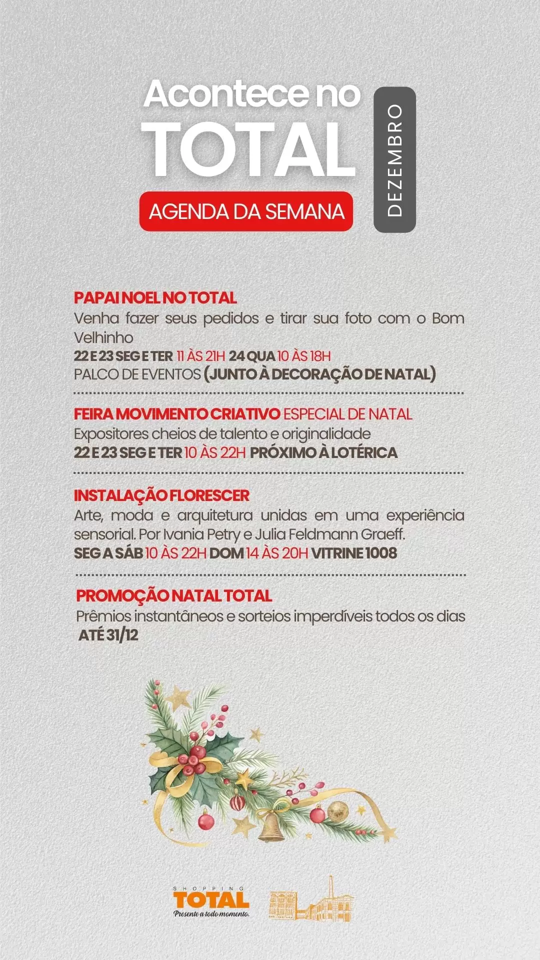 Neste fim de ano, o Shopping TOTAL terá horários diferenciados para proporcionar ainda mais comodidade aos