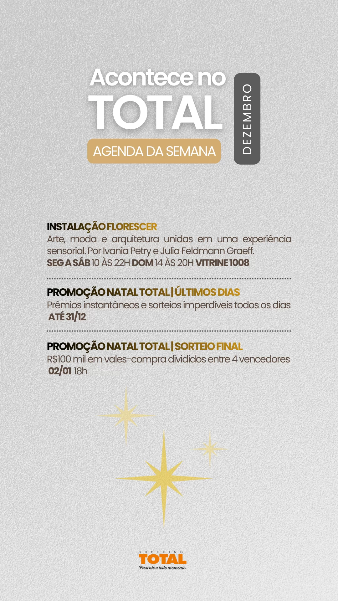 Acompanhe as novidades e descubra os destaques imperdíveis do Shopping TOTAL.