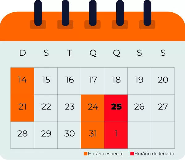 31/12 (Quarta-feira) – HORÁRIO ESPECIAL – Véspera de Ano-Novo